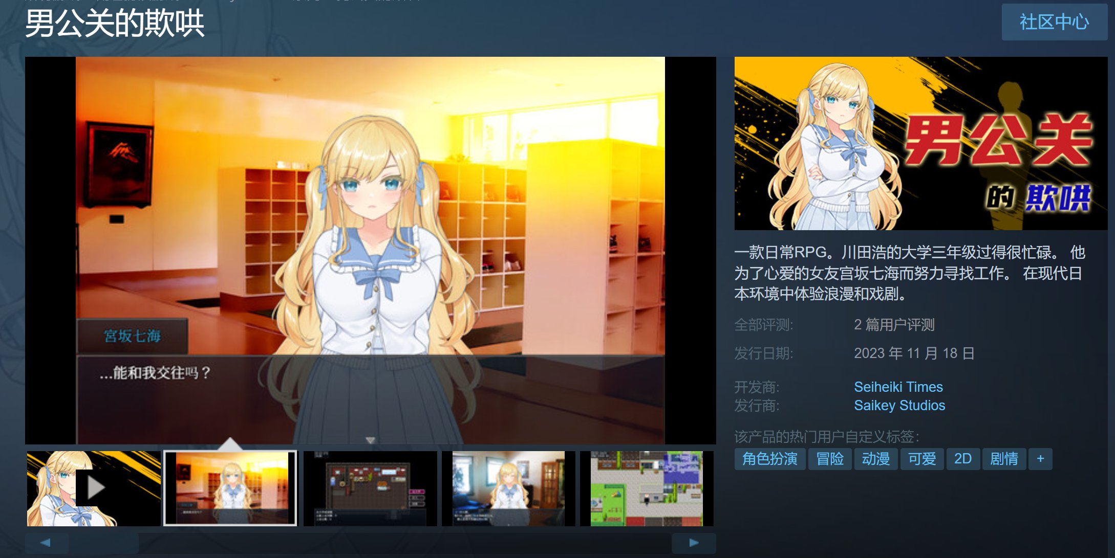 一款日常RPG。川田浩的大学三年级过得很忙碌。 他为了心爱的女友宫坂七海而努力寻找工作。 在现代日本环境中体验浪漫和戏剧。川田浩史正在享受着他忙碌且充实的大学生活。他住在自己的公寓里,打着散工,并且在试尽各种办法来讨好他的女朋友,宮坂七海。